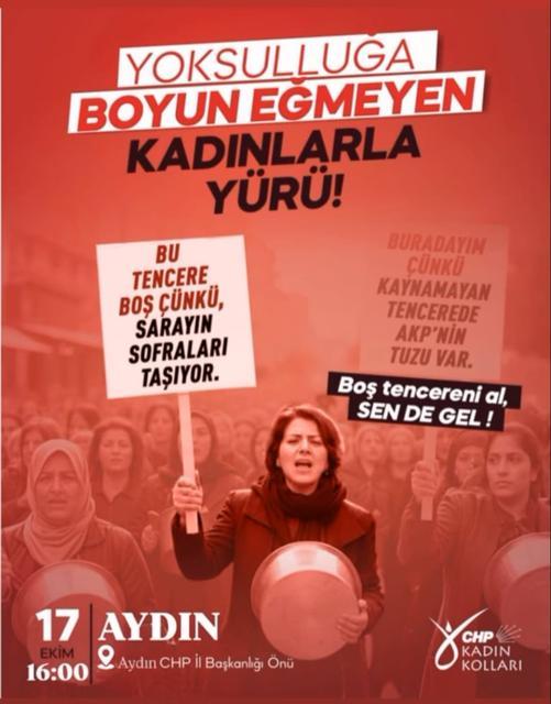 CHP Aydın Kadın Kolları, artan ekonomik kriz ve yoksulluğa dikkat çekmek için sokaklara çıkıyor. Kadınlar, “boş tencere” eylemiyle geçim sıkıntısına karşı ses yükseltecek. Cumhuriyet Halk Partisi (CHP) Aydın Kadın Kolları İl Başkanlığı, ülkedeki ... haberin devamı için tıklayın