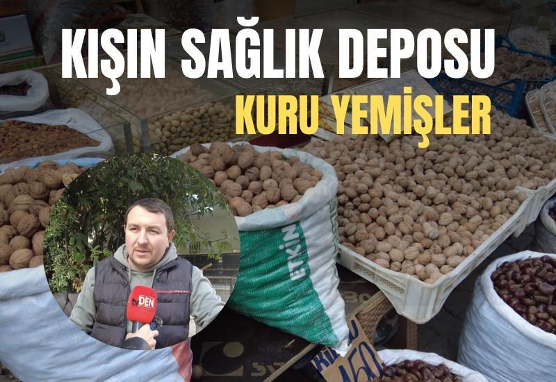 Aydın’da kışın gelmesiyle birlikte kuru yemiş ve kurutulmuş meyve satışlarında hareketlilik yaşanıyor. Vatandaşlar hem lezzet hem de sağlık açısından kış meyvelerine yoğun ilgi gösteriyor. Üçüncü kuşak kuru yemiş satıcısı İsmail Arslantaş, “Biz çocukluğumuzdan beri bu işin içindeyiz. Kış aylarında işlerimiz daha hareketli oluyor. Kestane, ceviz, incir ve cennet elması kurusu en çok sattığımız ürünler” dedi.