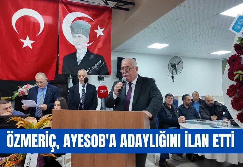 Aydın Şoförler ve Otomobilciler Odası Başkanı Semih Özmeriç mayıs ayı içerisinde yapılması planlanan Aydın Esnaf ve Sanatkarları Odaları Birliğine (AYESOB) aday olduğunu ilan etti. Tek adayla gidilen seçimlerde Özmeriç güven tazeledi.