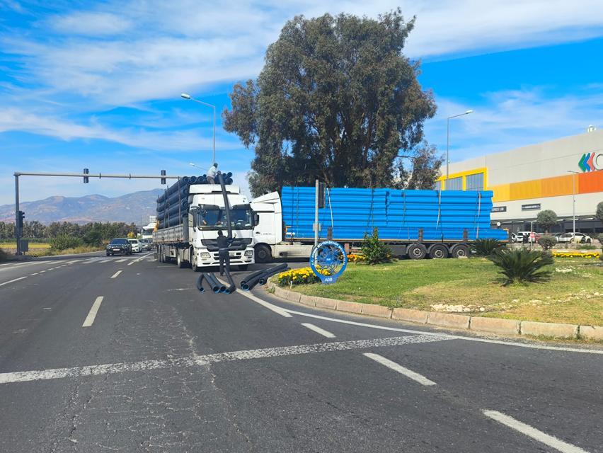 Aydın’ın Efeler ilçesinde, tırın ani fren yapması sonucu kanalizasyon boruları yola saçıldı. Olayda şans eseri yaralanan olmazken, trafik bir süre durma noktasına geldi. Olay, Aydın-Muğla Karayolu Otogar Kavşağı’nda saat 14.30 sıralarında meydana geldi. Edinilen bilgiye ... haberin devamı için tıklayın