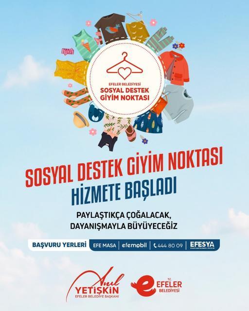 Sosyal Destek Giyim Noktası ve diğer sosyal yardımlardan yararlanmak isteyen vatandaşlar, başvurularını Efe Masa, Efemobil uygulaması, 444 80 09 numaralı hat üzerinden gerçekleştirebiliyor.