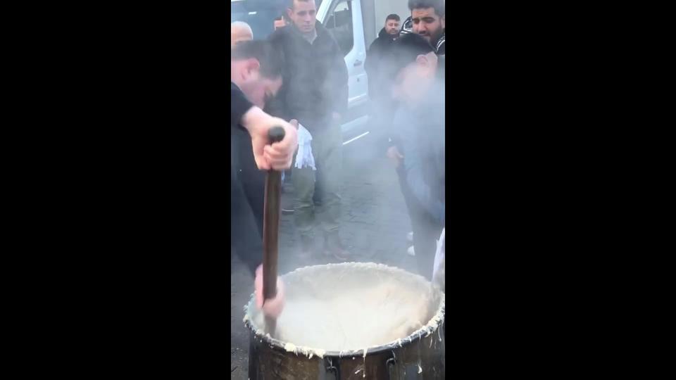 Aydın'ın Germencik ilçesindeki bir düğünde şehrin geleneksel düğün yemeklerinden keşkek yapıldı. Davul zurna ile Ege türküleri eşliğinde keşkek döven vatandaşlar soğuk havaya aldırış etmediler. Yapımı saatler süren keşkek için saatler öncesinden ... haberin devamı için tıklayın