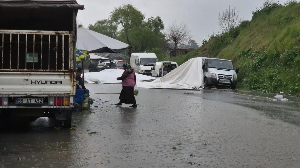 Şiddetli yağış pazarı erken dağıttı